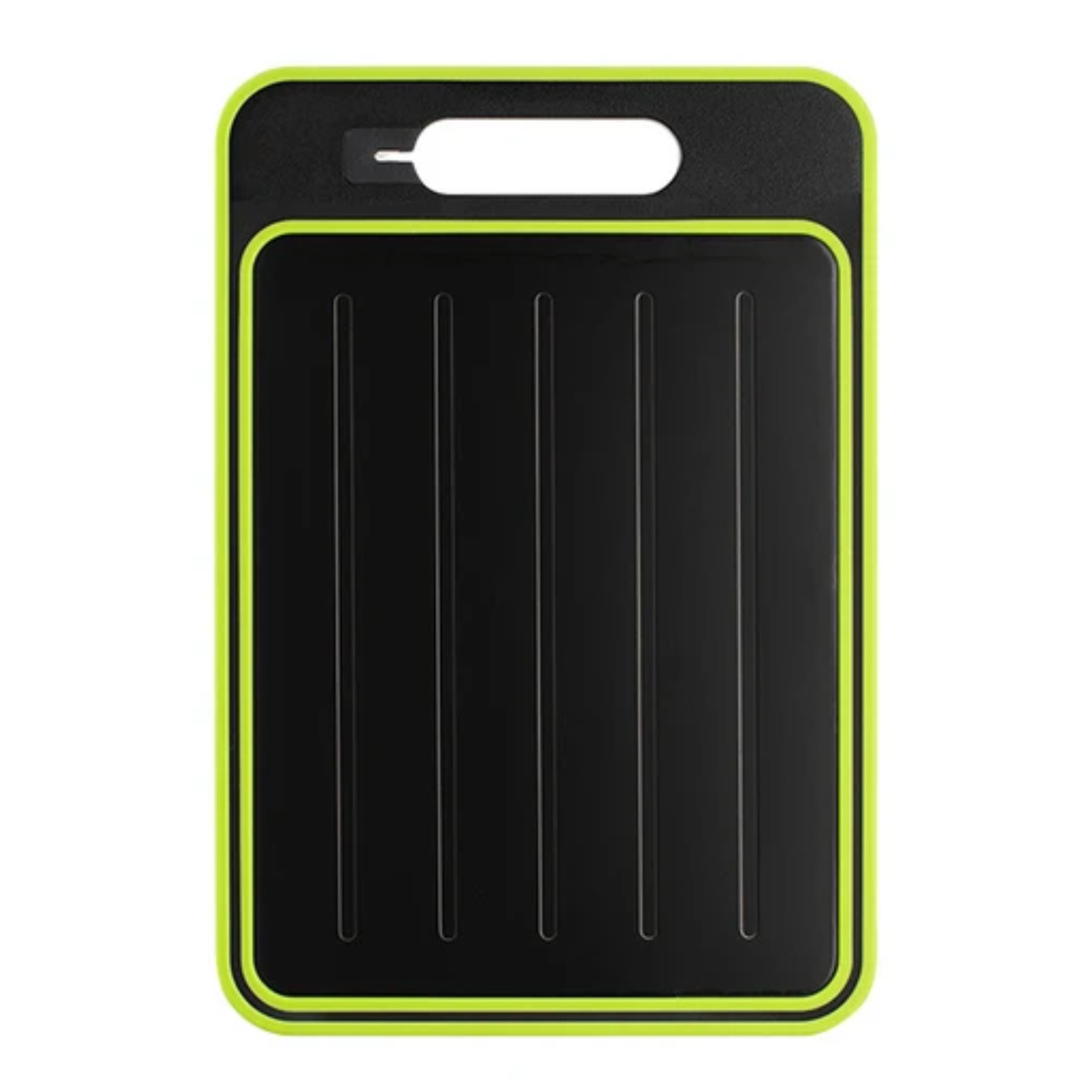 Revolutionise your kitchen with the Cook's Essentials four-in-one Defrosting Chopping Board. This innovative board boasts an array of innovative features like a built-in knife sharpener, non-slip edge and garlic grinding section, making it an indispensable addition to any culinary enthusiast's toolkit. Perfect for defrosting, chopping, slicing and grinding, this board ensures efficiency and convenience in every meal prep session.
